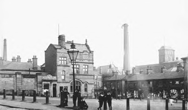 1906 | ![]() Glossop town centre with electrified trams and decorative street lights. |