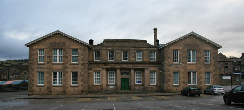 1958 | English Heritage Grade II Listed Building Town hall, market hall and municipal buildings, 1838, 1845, 1897 and 1923. By Weightman and Hadfield for the 12th Duke of Norfolk. Ashlar millstone grit with ashlar dressings. Panelled stacks and slate roof. STYLE: Classical. PLAN: T-plan. EXTERIOR: 2 storey. North front has 25 windows arranged 3:8:1:5:1:8:2. Central, taller town hall block has 7 windows arranged 1:5:1. Ground floor has vermiculated rustication and central 5 bay open arcade with round arches and Tuscan Doric columns, flanked by single doorways with double doors and moulded ashlar surrounds and bracketed hoods. Above 5 round headed sashes with margin light glazing and bracketed cornice, flanked by single similar windows with glazing bar casements. Above square clock turret, 1897, topped with circular cupola. Side wings, have 4 shops to each side mostly with C20 shop fronts, Nos 7 and 17 retain original shop fronts with console brackets and fascia boards, above 2 windows to each shop divided by plain pilasters. End block to right 2 windows and 3 storeys with curved corner, with 2 shops divided by plain pilasters that continue to upper floors. Municipal offices, south front, has 11 windows arranged 3:5:3. Recessed 5 window centre has central doorway with overlight and single flanking sashes set back behind 2 Tuscan Doric columns in antis with single flanking sashes between similar pilasters. Above 5 sashes topped by parapet with Vitruvian scroll motif stepped to ends. Projecting 3 window gabled wings with overhanging eaves and rusticated vermiculated quoins. Central 2 storey panels with rusticated vermiculated surrounds and paired sashes to each floor, either side single sashes to each floor. All windows have glazing bar sashes. Left and right returns have 2 storey 6 and 4 window facades and beyond 7 tall round headed windows to market hall, central opening to left return has tall rusticated vermiculated door surround. INTERIOR: not inspected. SUBSIDIARY FEATURES: included in this listing are the iron railings and boundary piers to the Market Ground. The original Town Hall design included lock-up prison with 4 cells. (The Buildings of England: Pevsner N: Derbyshire: Harmondsworth: 1953-1986: 219; Hadfield Cawkwell Davidson (Architects): 150 Years of Architects Drawings- Hadfield: Sheffield: 1834-1984). © English Heritage 1958. The National Heritage List Text Entries contained in this material were obtained on 11/6/2013. The most publicly available up to date National Heritage List Text Entries can be obtained from www.english-heritage.org.uk. |