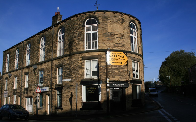2013 | ![]() The old Liberal Hall with its distinctive curved elevation and elongated arched second floor windows occupies the corner of Edward Street and Railway Street. Photograph taken by Mike Tomlinson. |
