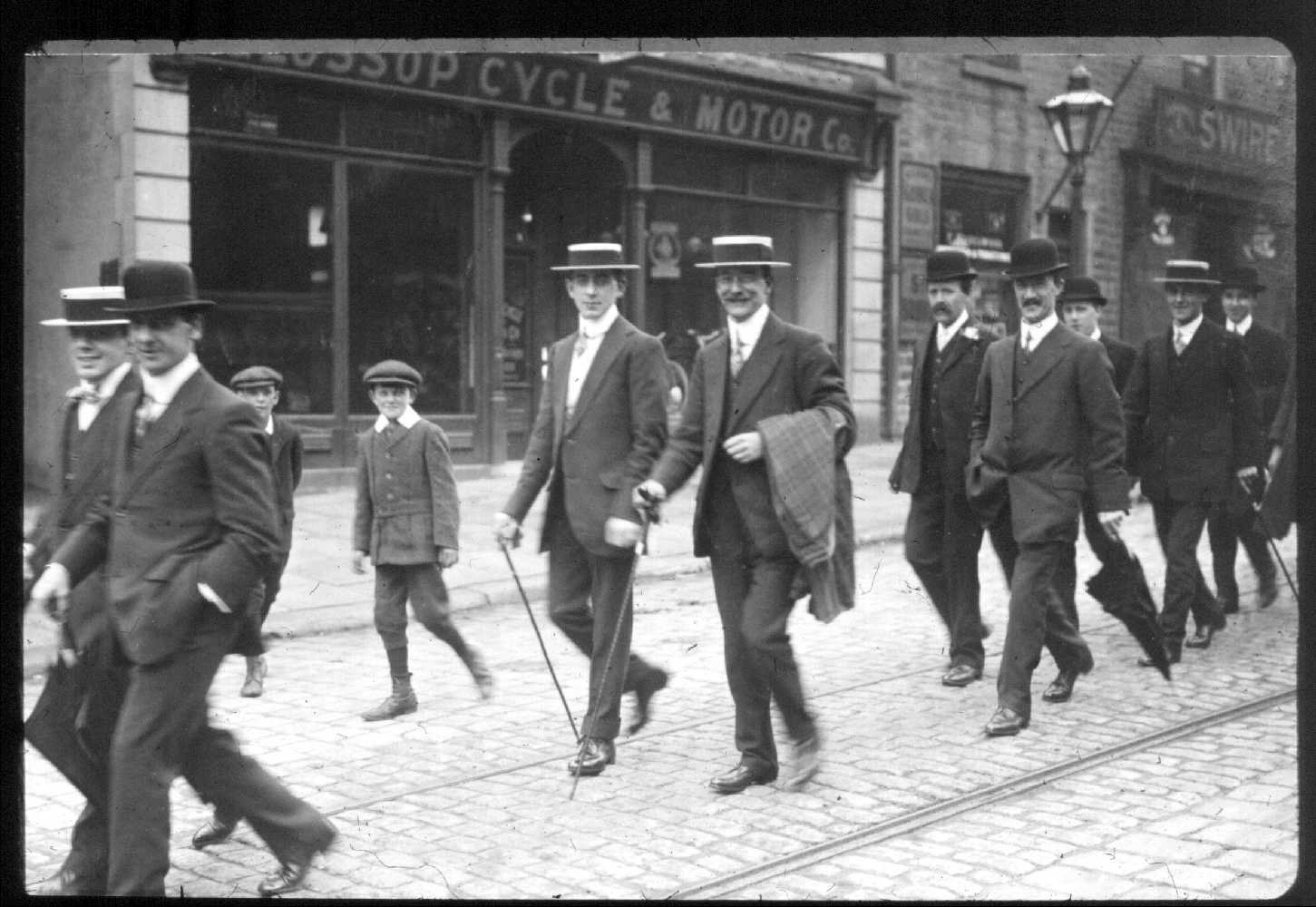 1903 | ![]() Railway Street bottom right. This picture was taken from onboard a tram, Glossop Tramways operated from 20 August 1903 to 24 December 1927 promoted by the Urban Electric Supply Company Limited. |