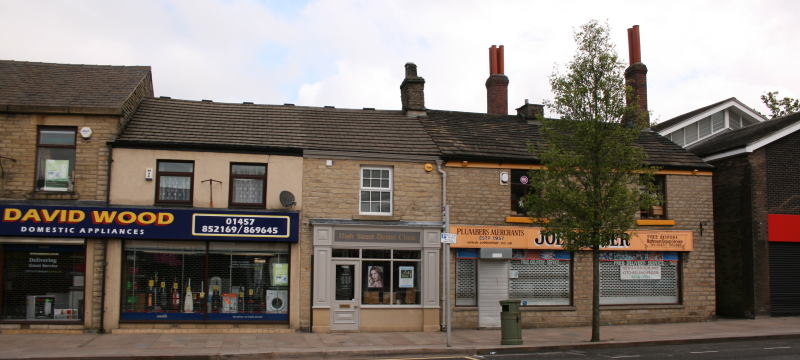 1984 | ![]() Not sure what this shop is to the left of the tree. Photograph courtesy of Glossop & District Historical Society. |