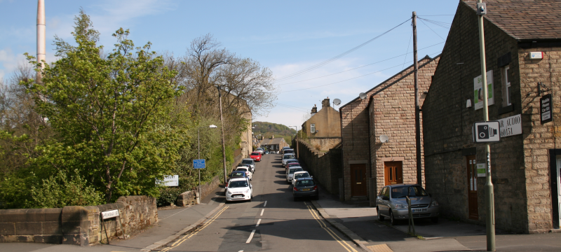 2009 | Google Street View Shows Shrewsbury Street with bridge over Glossop Brook to the left and red phone box left again |