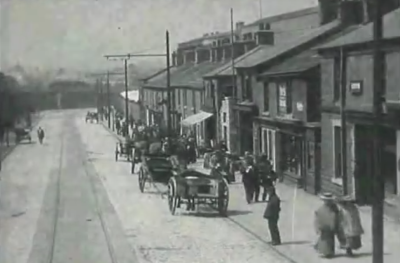 1903 | ![]() 114 High Street West centre. This picture was taken from onboard a tram, Glossop Tramways operated from 20 August 1903 to 24 December 1927 promoted by the Urban Electric Supply Company Limited. |