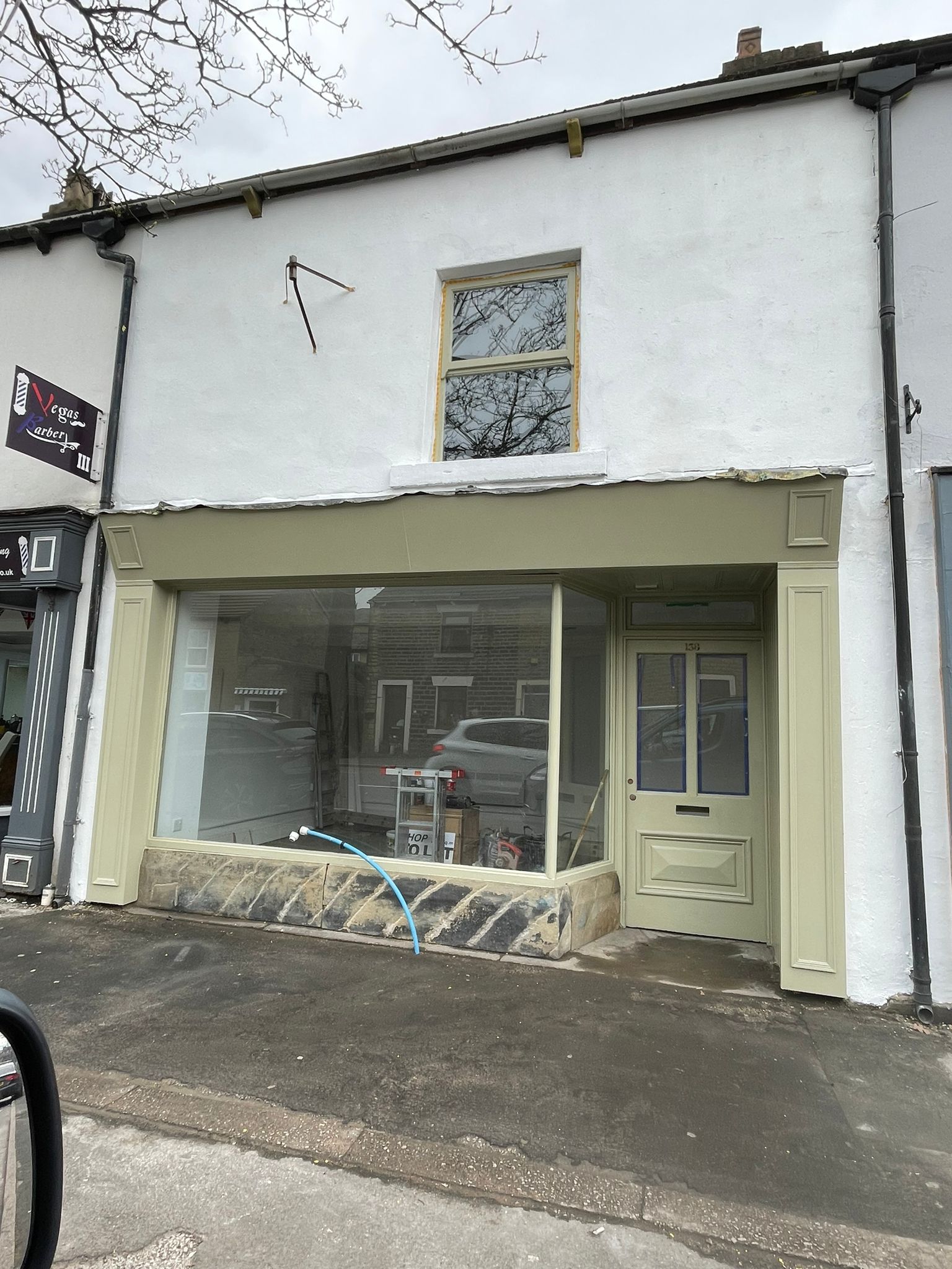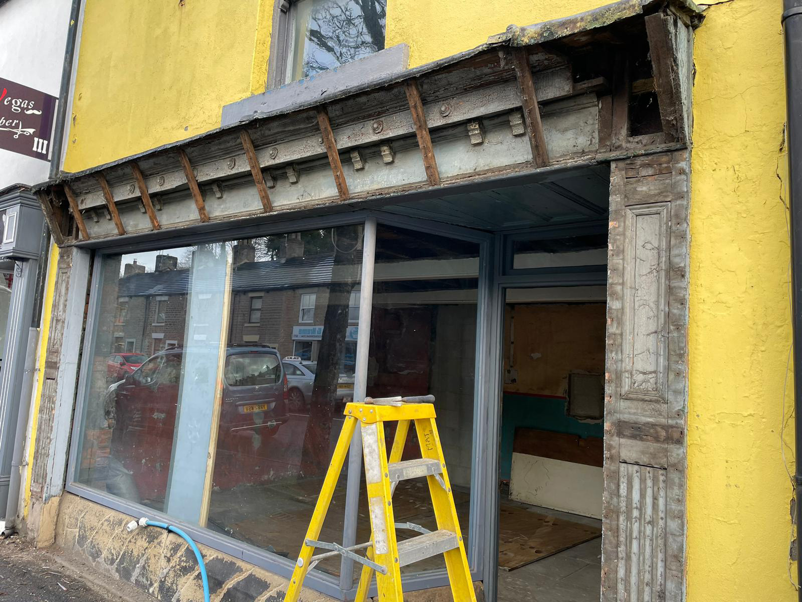 2023 | Shop undergoing renovation, the base of the window is simply three massive stone slabs. Photo courtesy of Chris Hales. |