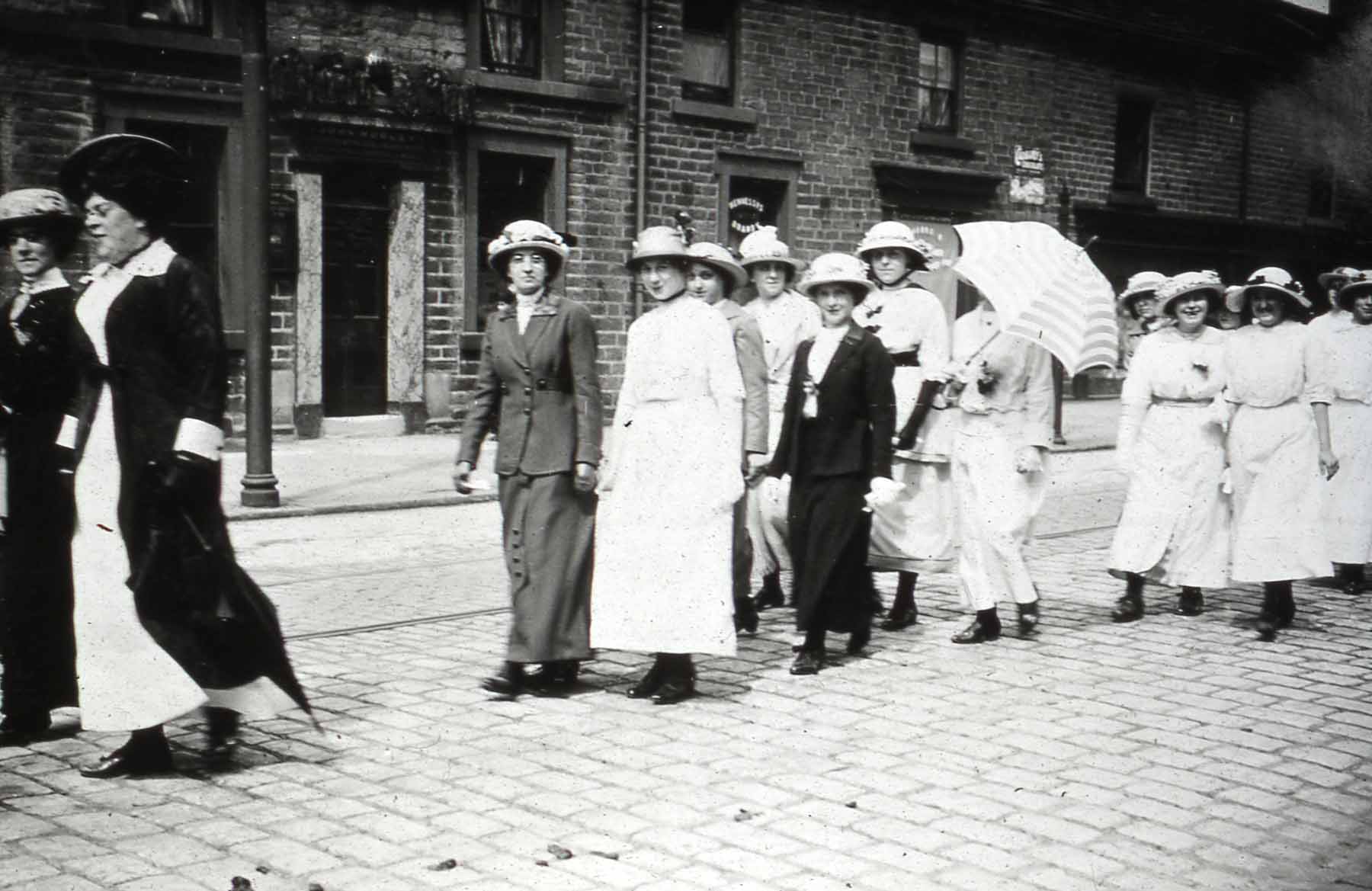 1910 | ![]() This probably a Whitsun parade walking west along High Street West with The Globe pub (left). Image from a digital collection by Bert Baker. |