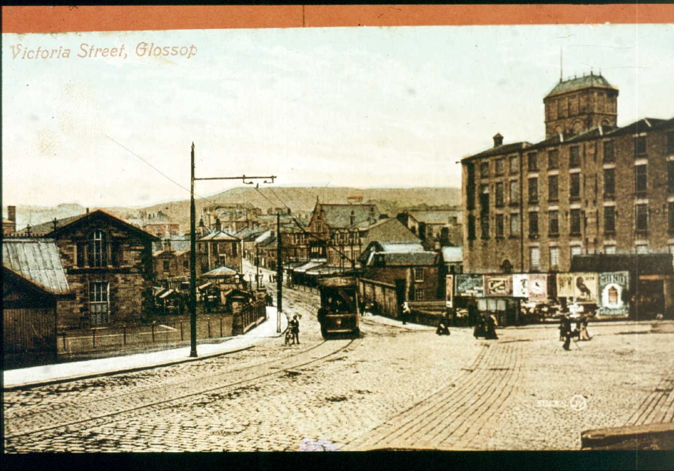 1910 | ![]() Victoria Street look back towards Glossop town centre. Image from a digital collection by Bert Baker. |