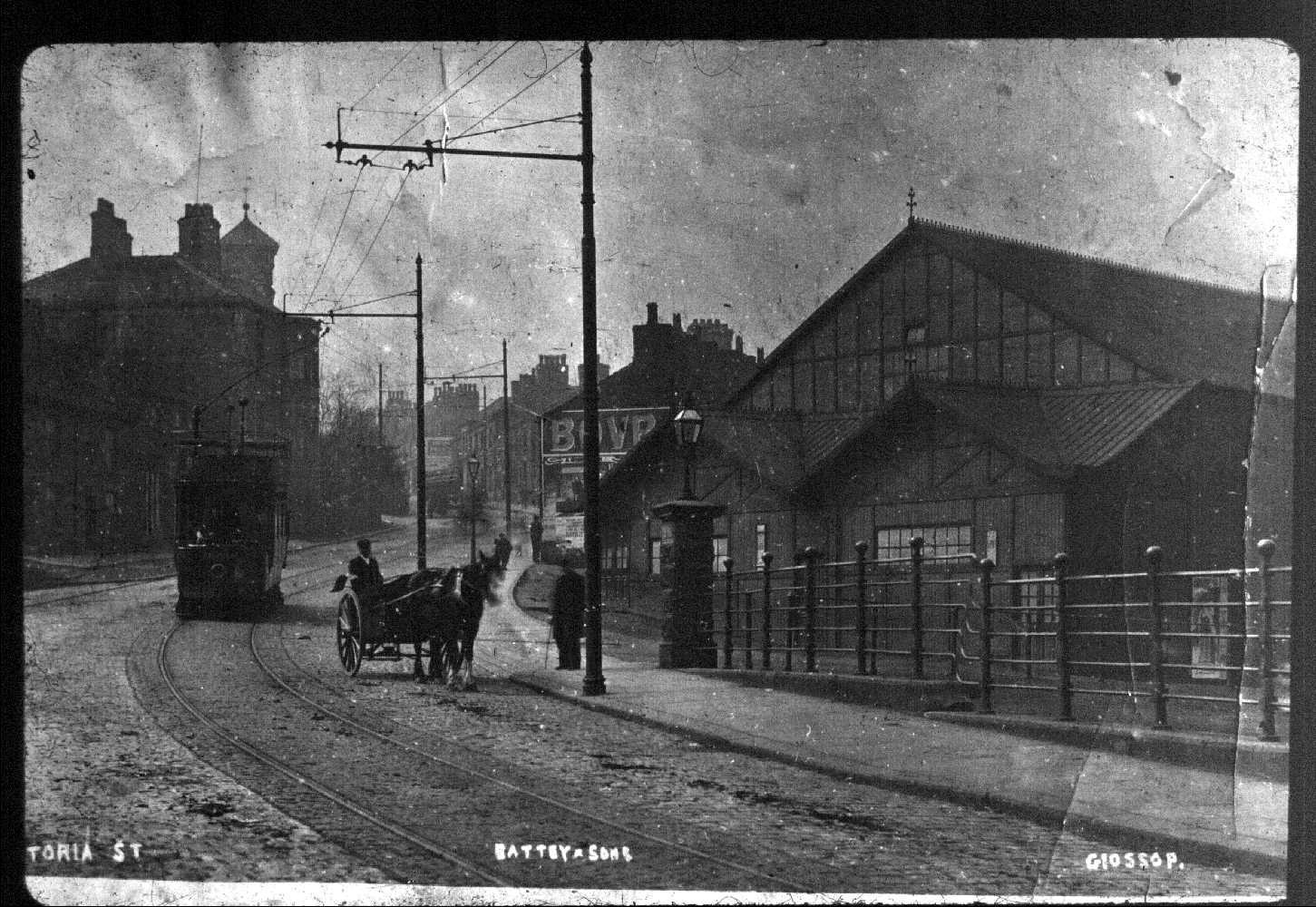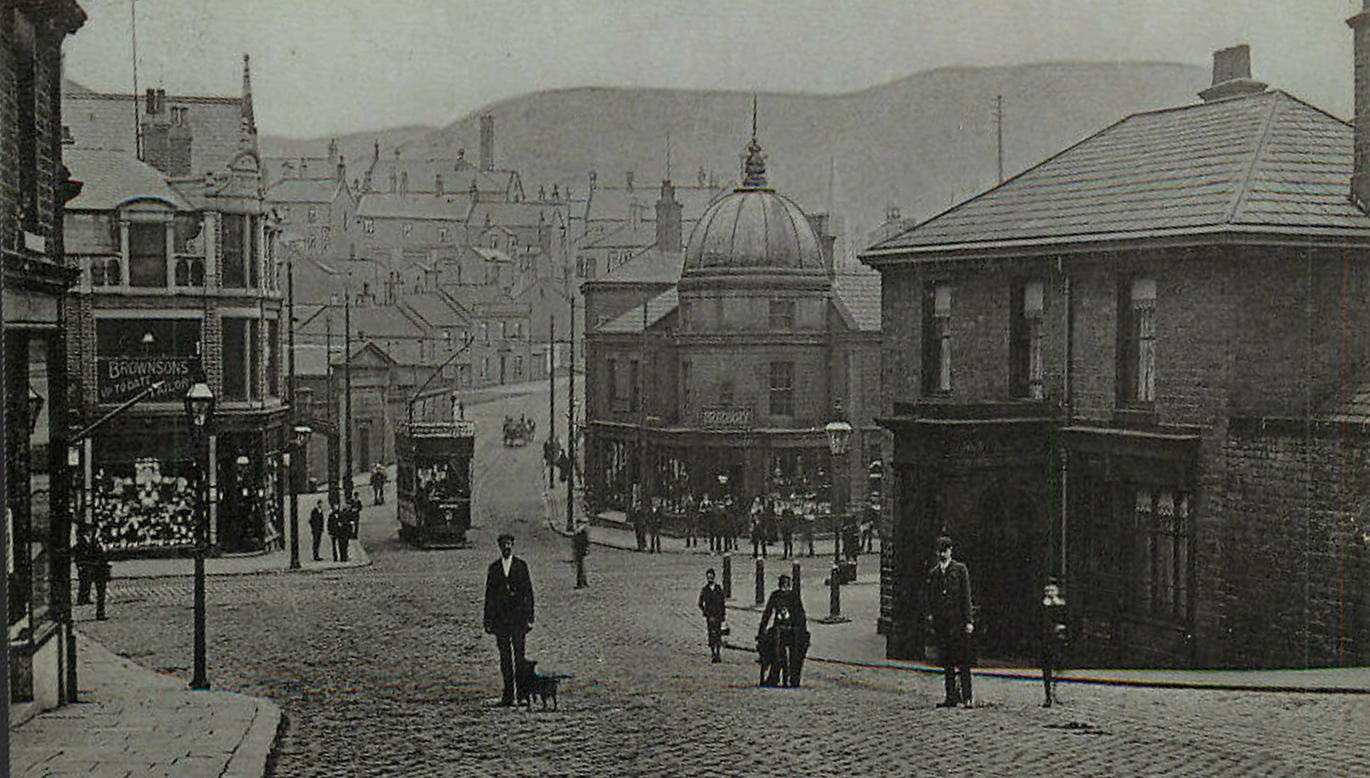 1910 | ![]() Victoria Street, market ground on the left and Howard Town Mill on the right. Image from a digital collection by Bert Baker. |