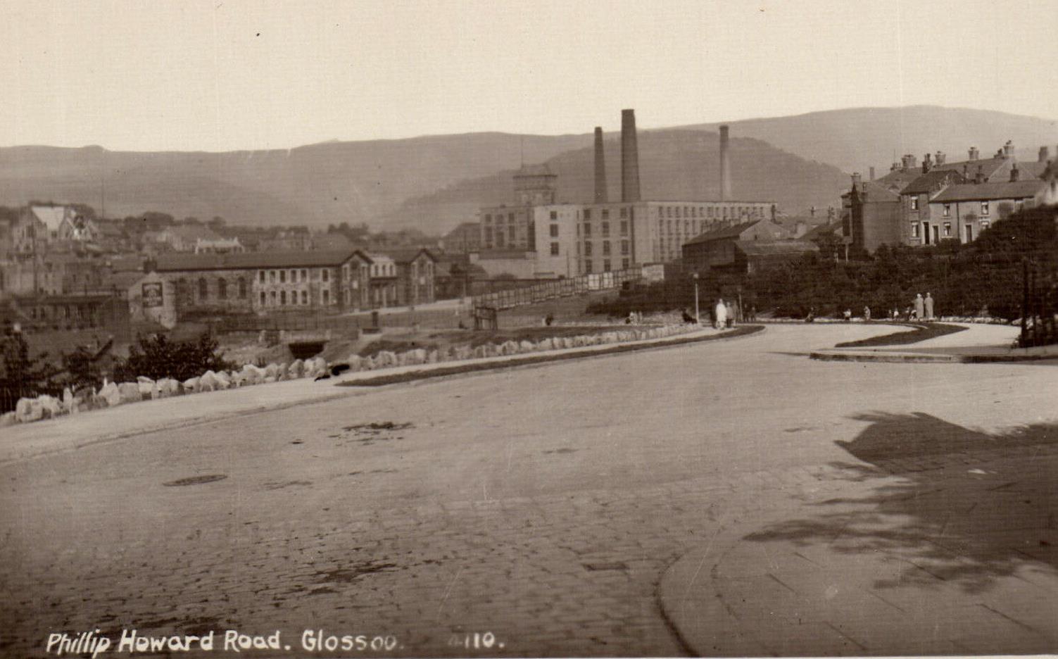1920 | ![]() A photo from the top of Philip Howard Road looking towards Glossop town centre, to the right, The Bridge Inn (on Market Street), the old market hall before alteration were made to create the Municipal Building and left Howard Town Mill. |