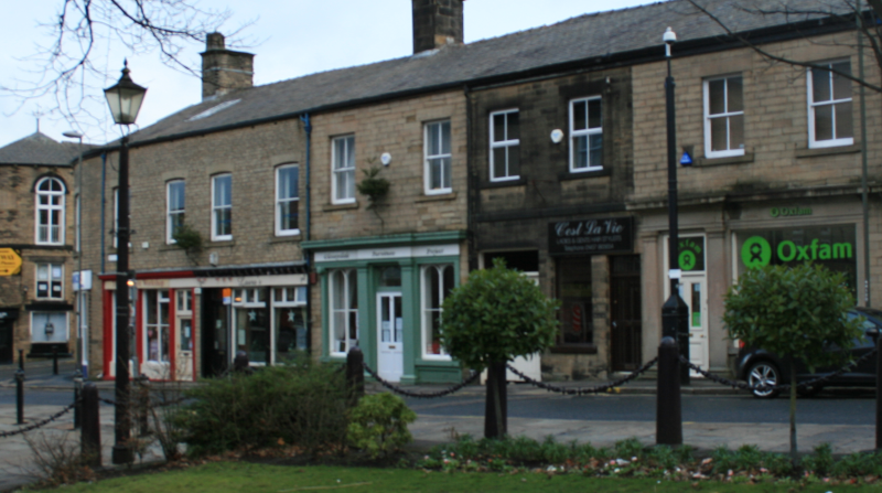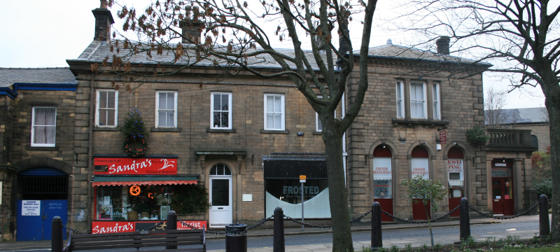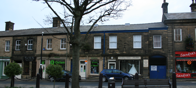 2000 | ![]() English Heritage Grade II Listed Building Shop (number 8, above centre), formerly part of row. Early C19 with C20 alterations. Dressed millstone grit with ashlar dressings and Welsh slate roof plus stone stack with moulded cap. EXTERIOR: 2 storey. Street front has symmetrical 2 window range. Central doorway with C20 door and fanlight over, flanked by pilasters with moulded capitals and bases, flanked by single large 4-pane shop windows with painted stone pilasters surmounted by moulded entablature. Above two plain sashes under deep lintels. INTERIOR: boarded fireplace remains to ground floor. Internal subdivisions altered. Stairs rise from back room to storage above. © English Heritage 2000. The National Heritage List Text Entries contained in this material were obtained on 30/12/2013. The most publicly available up to date National Heritage List Text Entries can be obtained from www.english-heritage.org.uk. |