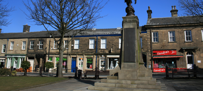 1930 | ![]() This photo is probably around the 1930s, Bank House on the left with the District Bank sign, war memorial in Norfolk Square and Partington Theatre, right. |