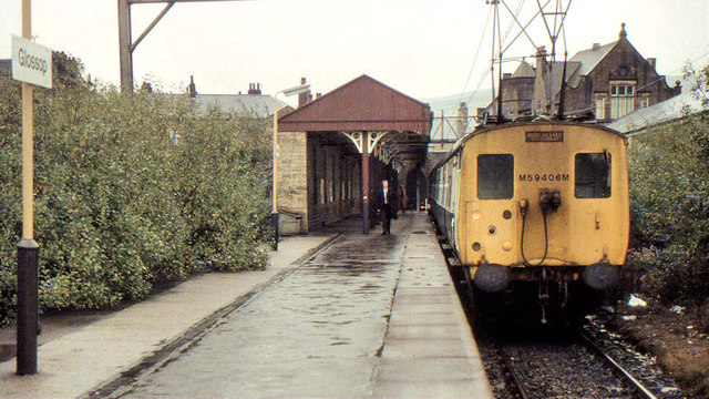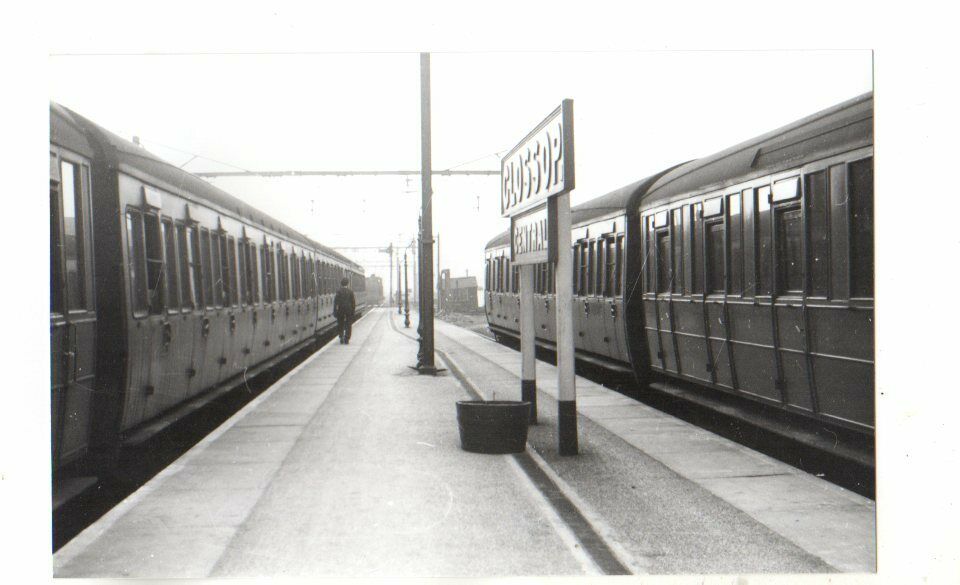 1960 | ![]() Glossop (Central) railway station, sometime between 1954 (looks like as overhead power cables) and 1974 when the station reverted back to just Glossop. |