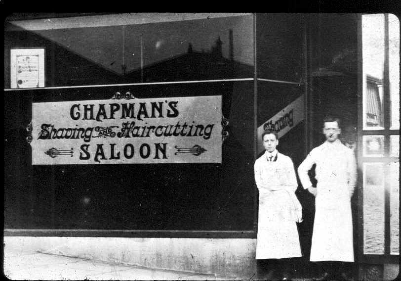 1920 | ![]() Presume the two gentlemen in the door way were the Chapman brothers. Image from a digital collection by Bert Baker. |