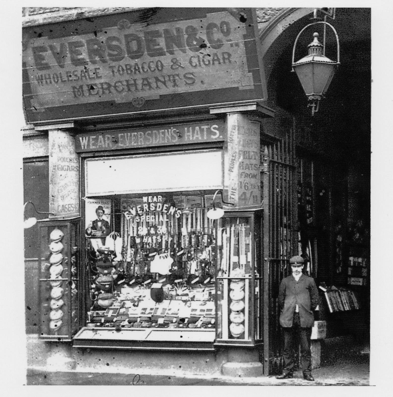 1905 | ![]() Eversden & Co. Wholesale Tobacco & Cigar Merchants also selling hats, "Felt hats from 1’ 6". Image from a digital collection by Bert Baker. |
